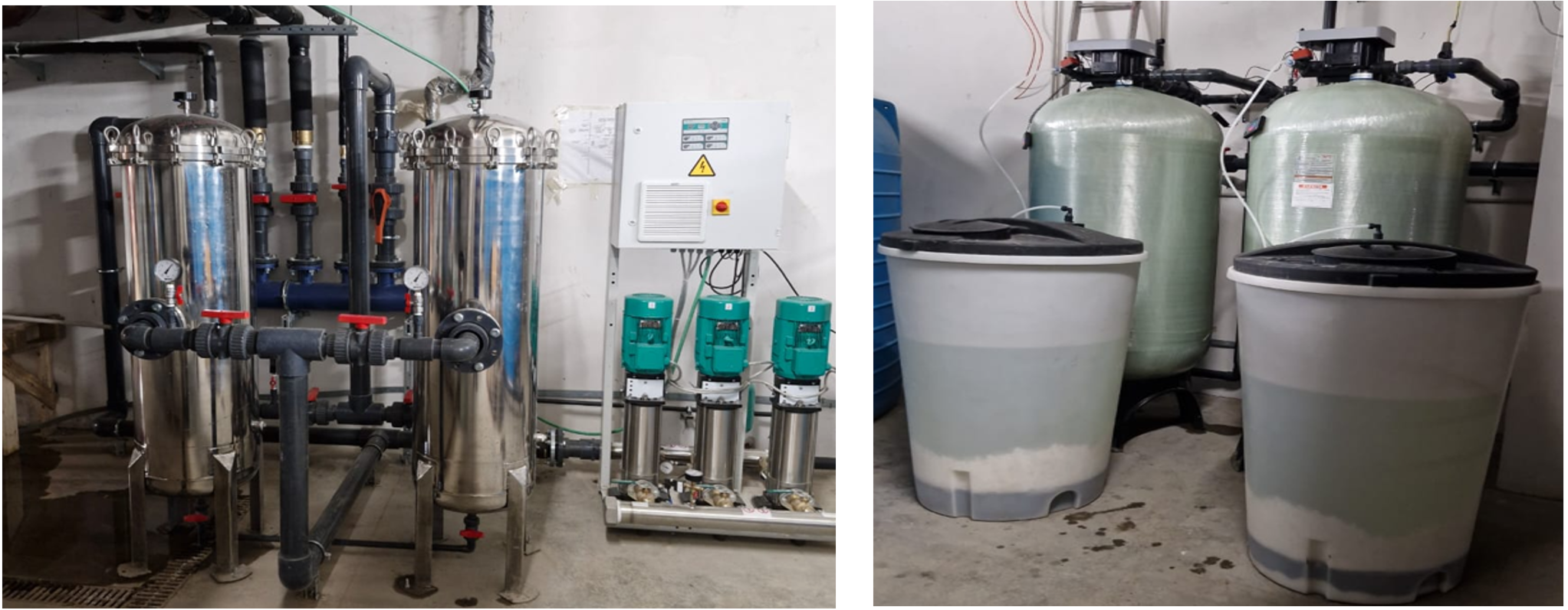 Применяемая технология процесса обработки основана на последовательной многостадийной очистке. Каждая стадия предназначена для преимущественного удаления примесей одинаковой или сходной природы, обладающих определенным набором свойственных им физико-химических свойств. На начальной стадии производится осветление (удаление механических взвесей) путем фильтрации через дисковые механические фильтры, после которых вода направляется в баки запаса исходной воды. Дальнейшая фильтрация от механических частиц производится картриджными фильтрами (10 мкм), после чего вода подается в общий коллектор, и оттуда направляется на нужды Заказчика. Для нужд кухни в административном здании и для водогрейных котлов разработана дальнейшая схема водоочистки – умягчение (удаление солей жесткости) с помощью ионообменных процессов, проводящихся на сильном катионите в регенерированной Na форме.