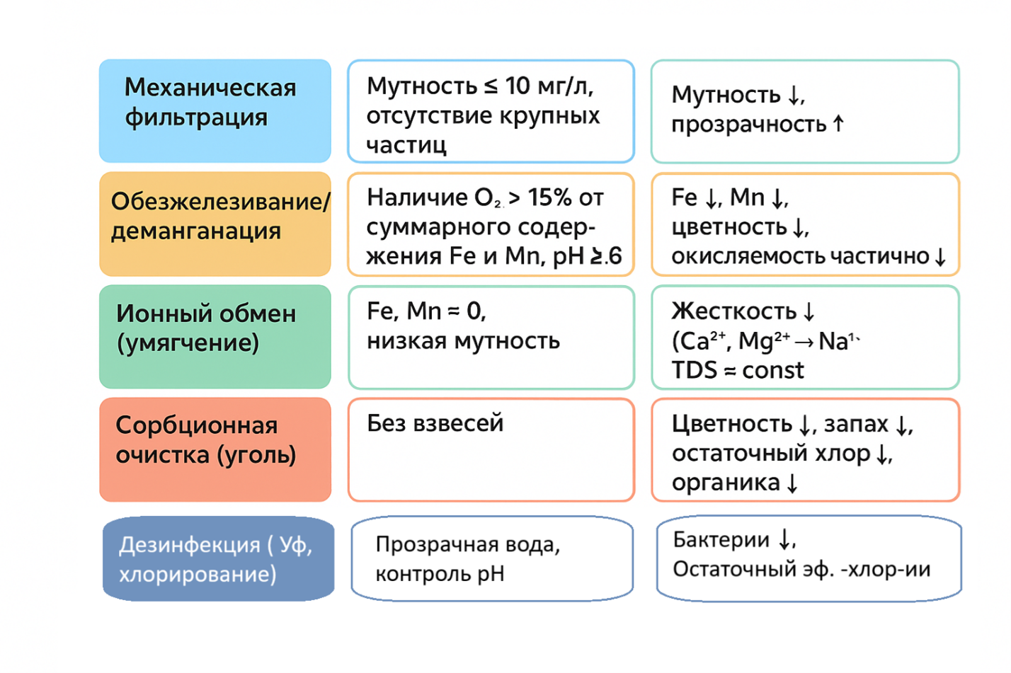 Качество воды в системах водоподготовки определяется не только параметрами исходной и конечной воды, но и промежуточными показателями на отдельных стадиях обработки. Контроль после каждой ступени позволяет оценить эффективность оборудования, вовремя выявить сбои и корректно подобрать режимы работы. Более того, каждая технология очистки предъявляет определённые требования к воде на входе: несоблюдение этих условий приводит к снижению ресурса фильтрующих материалов, ускоренному загрязнению и росту эксплуатационных затрат.