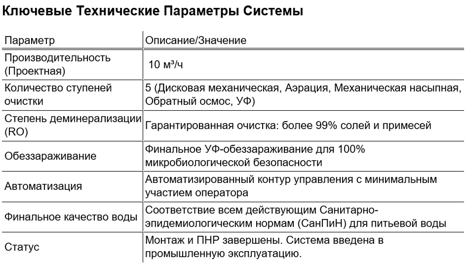 Для достижения требуемого качества воды была спроектирована и внедрена многобарьерная комплексная система водоочистки, включающая пять ключевых этапов: