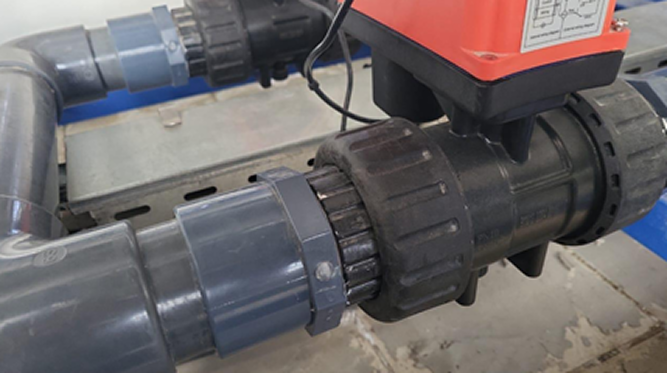 В ходе обслуживания выполнена замена шарового крана с приводом из-за изношенных запчастей. Произведён демонтаж и установка нового шарового крана с приводом, регулировка и проверка корректности работы привода. Работы позволили восстановить герметичность узла и обеспечить надёжное управление потоками воды в системе.